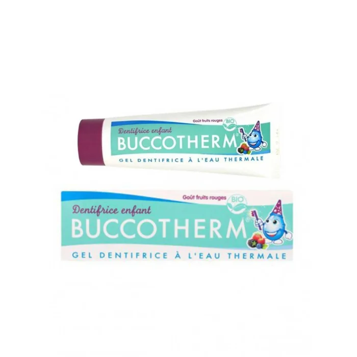 BUCCOTHERM Kids Red Berry Organic certified* is a sweet toothpaste gel adapted to children and to their taste. Made with 98% of natural ingredients and with its natural red berry flavour ? without sugar ? it will make happy all the little gourmand from 3 years old but also the most recalcitrant one !