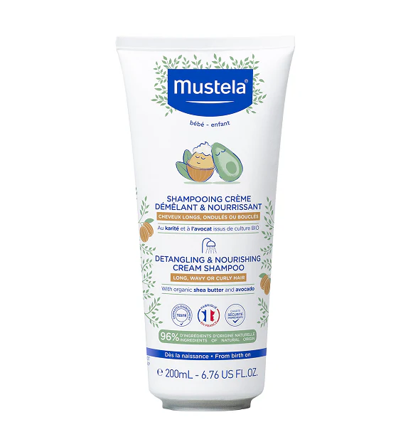 Detangling & nourishing cream shampoo makes managing your child’s textured hair easy and enjoyable. Ideal for wavy, curly, this gentle formula cleans, hydrates, and detangles, leaving hair soft, shiny, and bouncy without drying the scalp. Composed of 96% ingredients of natural origin per ISO 16128 standard, including shea butter and avocado oil, it defines curls, reduces frizz, and provides deep hydration without weighing hair down. It leaves hair smooth, tangle-free, and lightly scented with Mustela’s iconic fragrance.